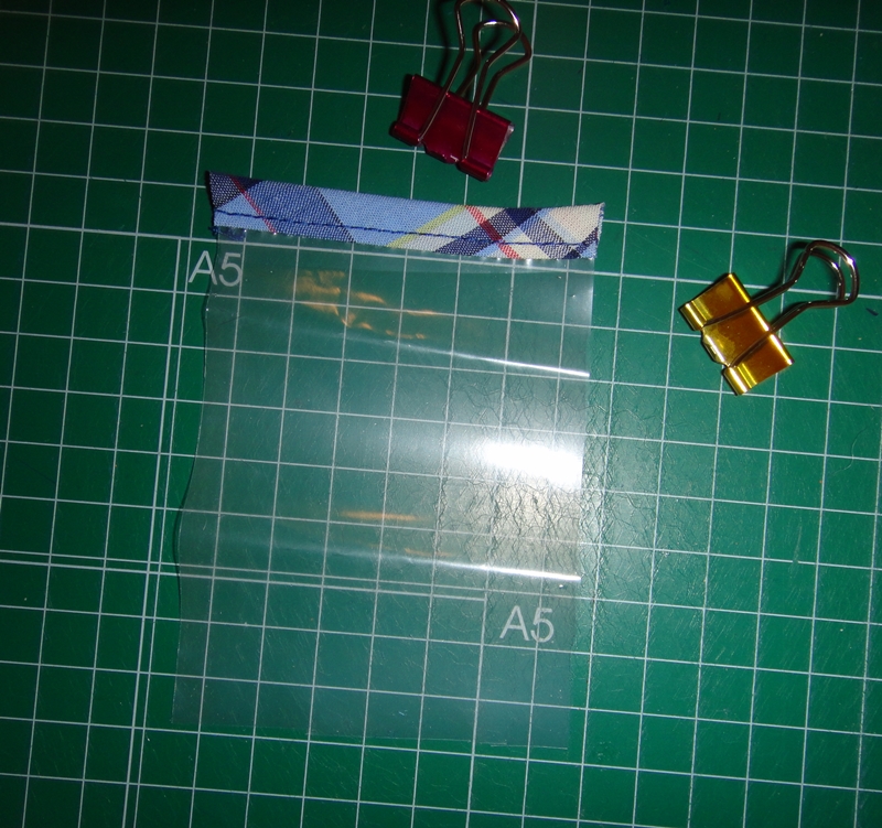 El plástico no se puede pinchar con alfileres, así que para sujetar las diferentes partes antes de coser he utilizado unas pinzas de papelería.