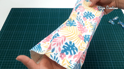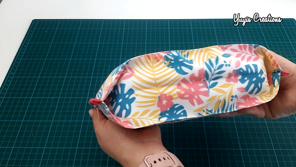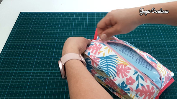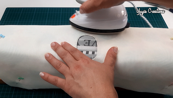 Colocamos la funda en posición y cosemos por los extremos para asegurarlo y luego cosemos el bies y pegamos la tapa. Y listo!