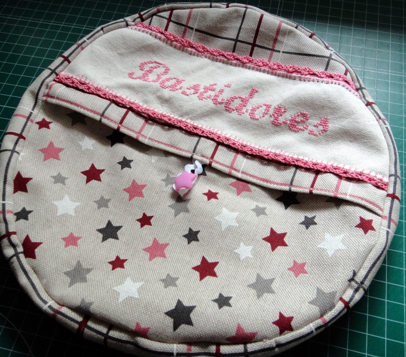 Si le dais margen suficiente, cabe incluso el bastidor con la tela que estéis bordando, y así queda protegido.