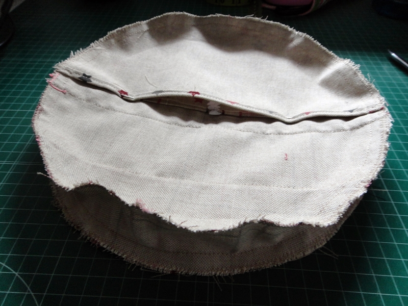 Marcamos con lápiz un círculo de 26 cm (dejamos 1 cm de margen de costura), en ambas piezas, y cosemos la tira larga todo alrededor.