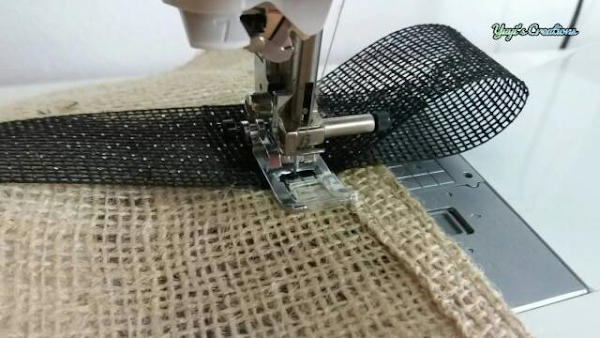 Al momento de colocarla doblamos a 10 cm de los extremos para hacerle un par de asas. Cosemos la cinta por los bordes y dejamos lo que es la base libre para que sirva de tope y se pueda transportar la maceta sin el riesgo de que se caiga.