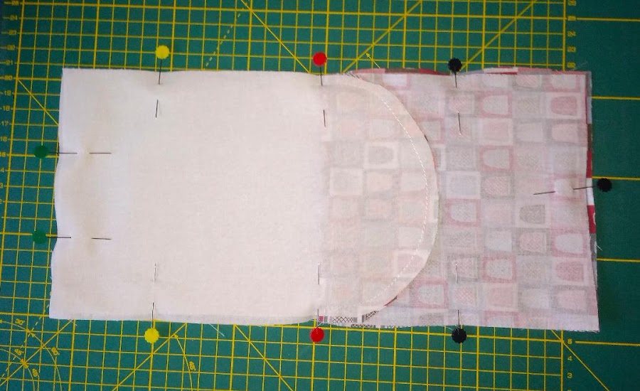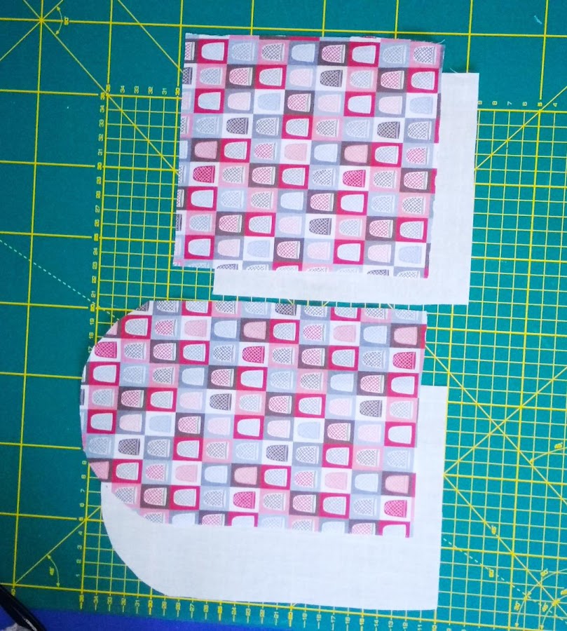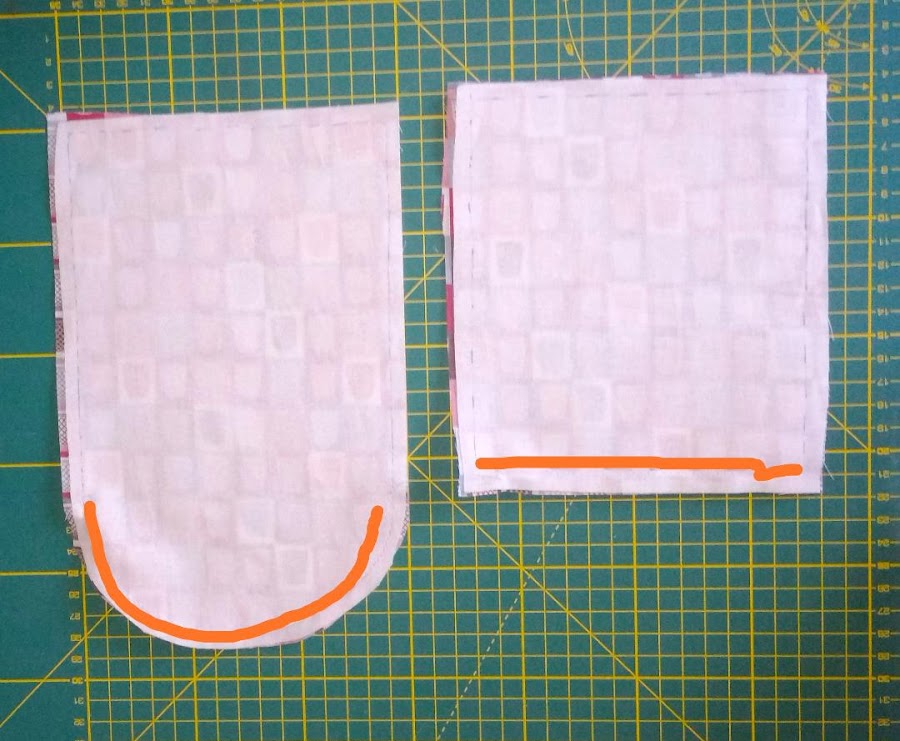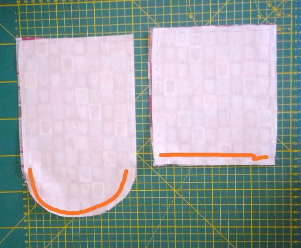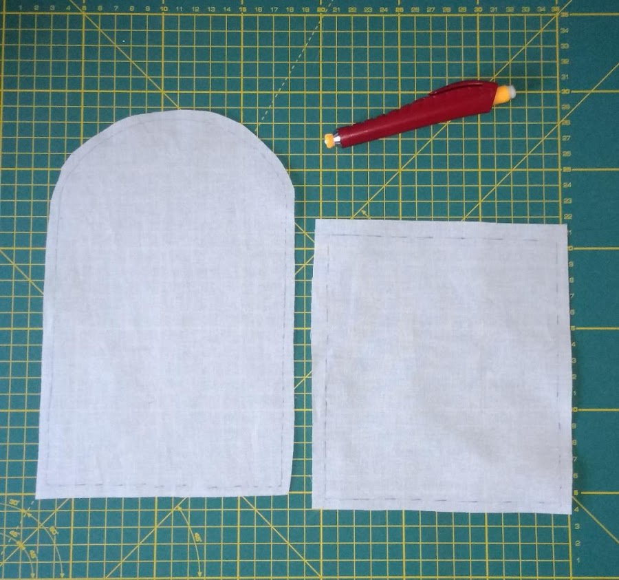 Corta una pieza cuadrada y una rectangular con el borde superior redondeado en tela de forro y en tela de algodón (en total 4 piezas)