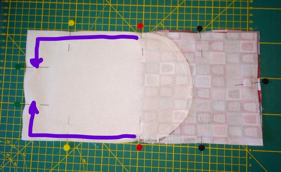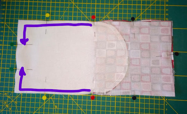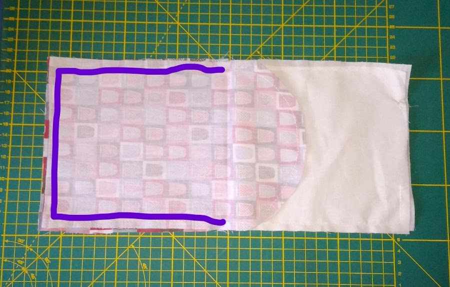 La parte del forro se cose, desde la solapa hasta un tercio del margen inferior, en ambos lados, como en la imagen (esa apertura es pra dar la vuelta depues)