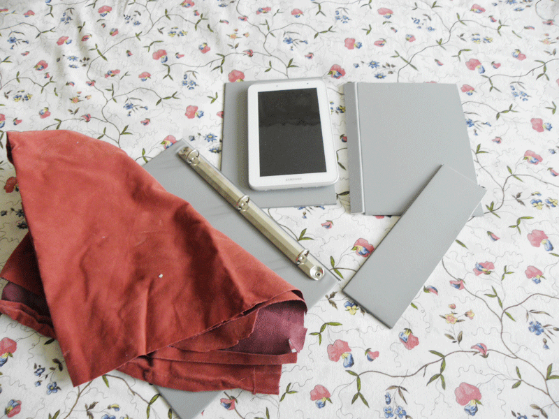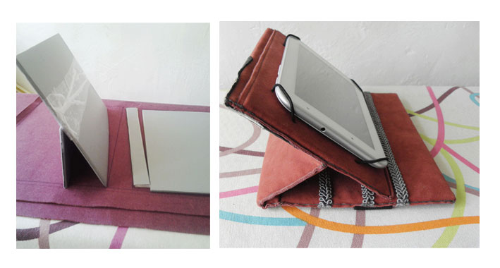 El lomo de la funda hace juego con el cartón cortado. El cartón completo queda en el interior y sobre el descansa la tablet. Es donde se colocan las gomas de sujeción para la tablet