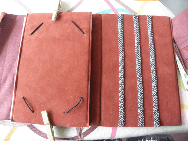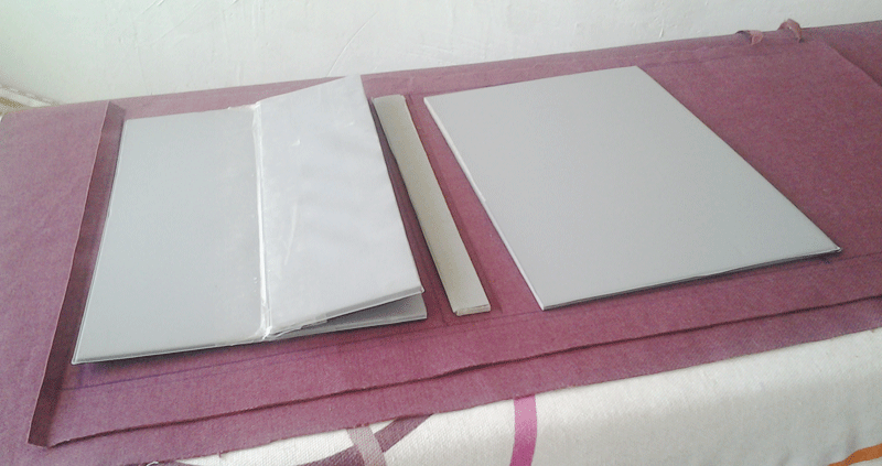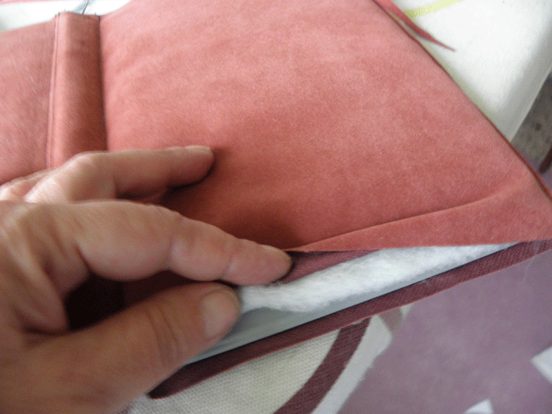 Además de lo lioso que fue el forrar la funda, para que no se note el cartón cortado que queda en la cara superior, metí un poco de guata y lo lié un poco más.