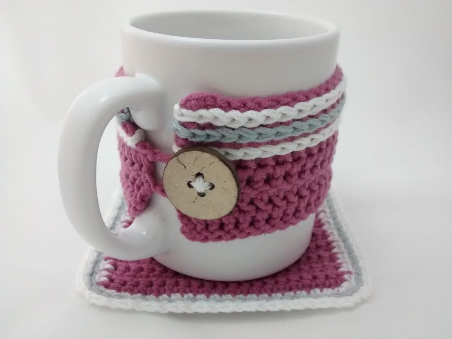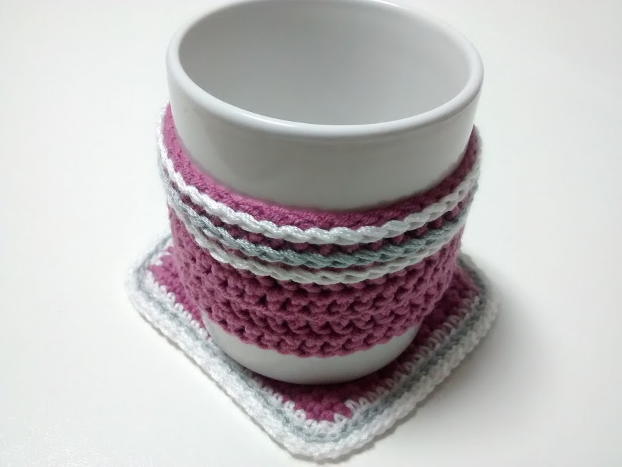 Es una funda para taza a juego con un posavasos tejido en crochet, que espero os guste tanto como a mi: