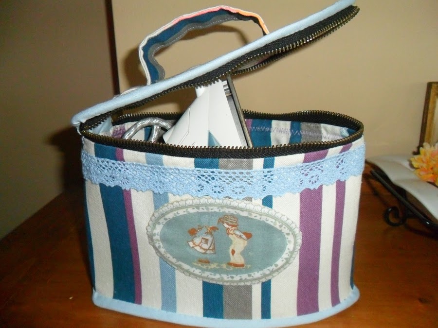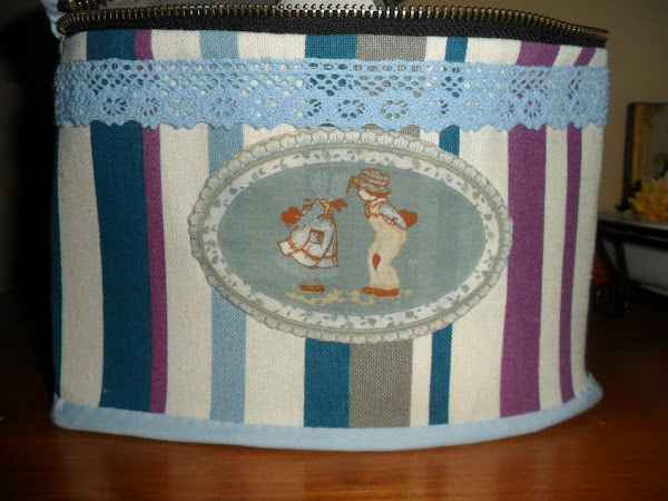 Aqui use telas de una cortina que hice para mi habitacion, que quedo muy bonita. Romantica, en tonos lilas, acorde con otra de rayas en azules.