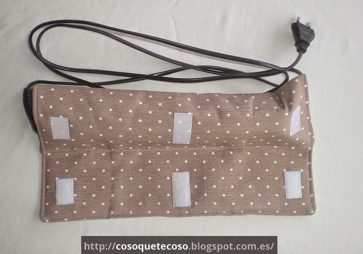 La funda va doblada como un acordeón, y quedan dos compartimentos diferenciados: uno para la plancha por si, como bien apunta Un ratito de patch y punto, está caliente cuando la guardamos que no roce con el cable eléctrico, y otro para el cable propiamente dicho.