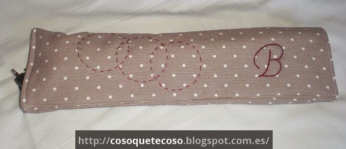 Esta vez sólo he puesto tres circulitos y la inicial del nombre, que lo que pretendía era una funda sencilla, a la par que elegante.