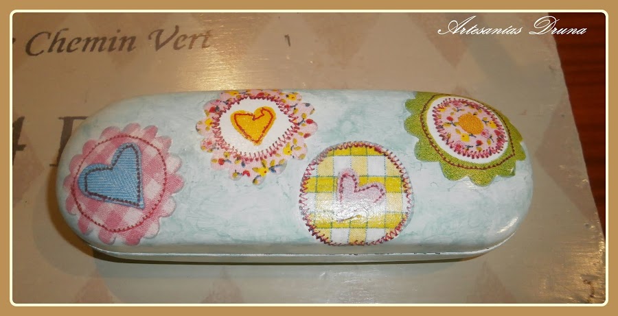 Esta cajita de madera me la consiguió mi querida Mar, y se fue para mi querida Mamen. Está realizada con acrílicas, entelada con doble faz y stencil.También va decorada con tela de arpillería barnizad ...
