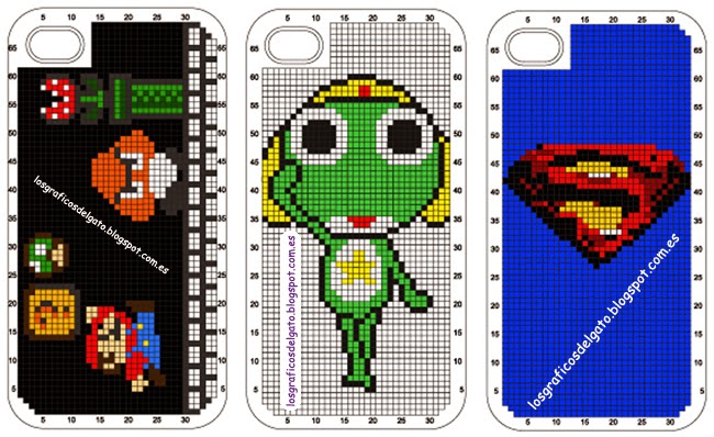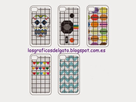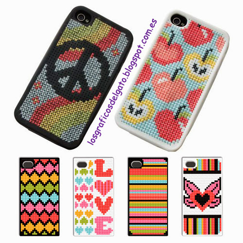 Gráficos para decorar con punto de cruz las fundas del Iphone...