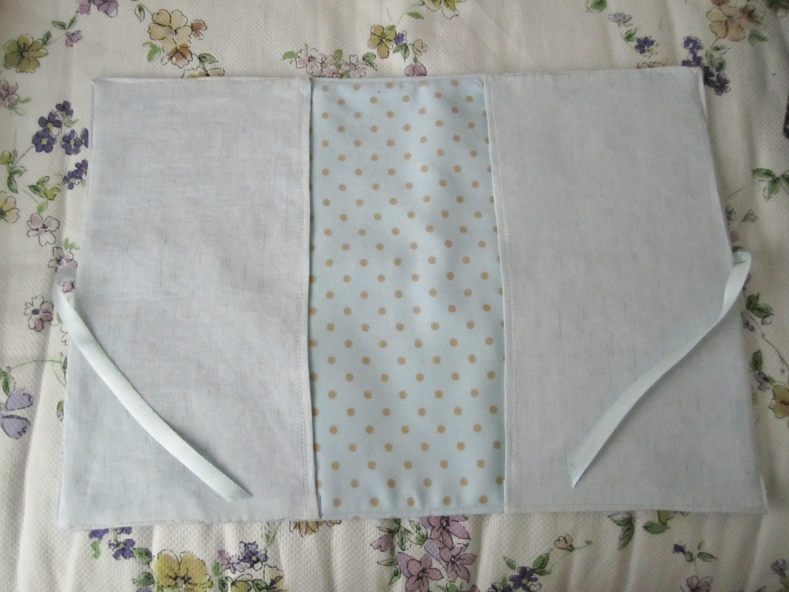 He utilizado un hilo tipo antiguo en un azul grisaceo, y una tela de topitos de algodon que me encanto dando un paseo por las tiendas de telas de donosti.