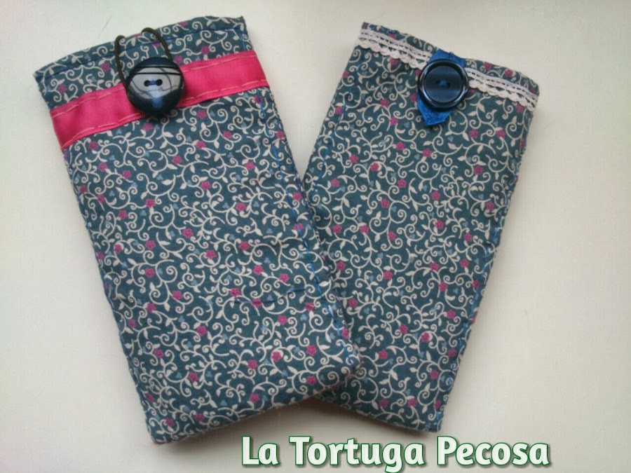 Aqui una par de funditas para dos moviles gemelos, espero que os guste. Las fundas suelen ir protegidas por dentro con fieltro y después la tela bonita de patchwork. Luego los adornos al gusto.