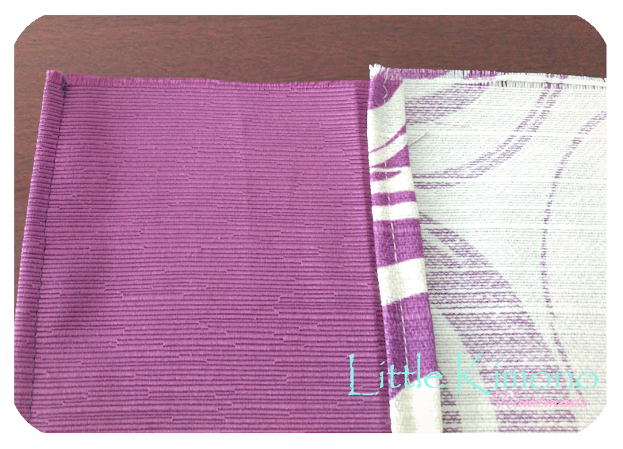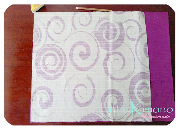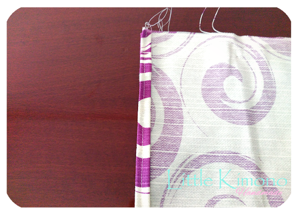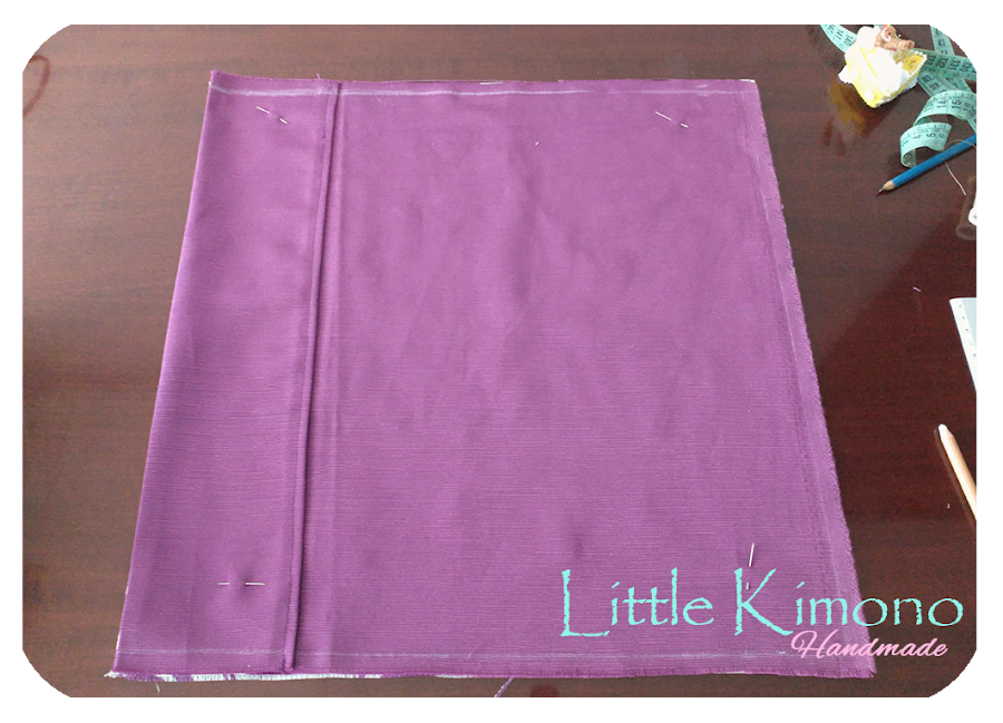 3. Sujetamos con alfileres las 2 piezas de tela -enfrentadas- y doblamos la solapa que nos queda sobre sí misma. En ambas piezas deben coincidir los laterales con dobladillo.
