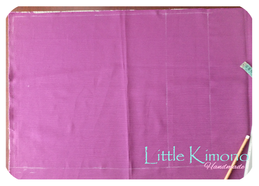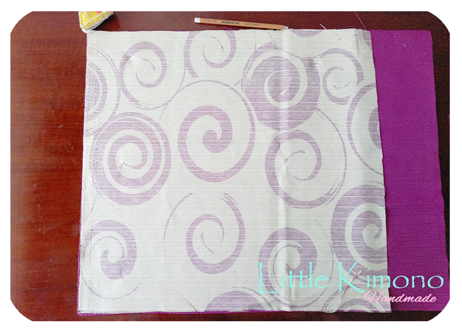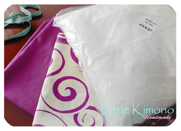 1. Marcamos y cortamos la tela, una pieza de 45x45cm y la otra de 45x60cm (+ 2cm para las costuras en ambas piezas).