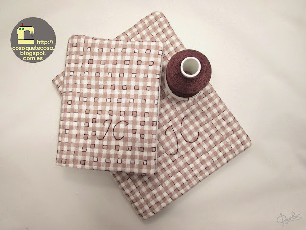Han sido dos cuadernos con sus fundas, el primero que os enseño va acolchado a mano con líneas horizontales y verticales, formando unos cuadros como la tela de loneta. Si clickais en las fotos veréis mejor el detalle.