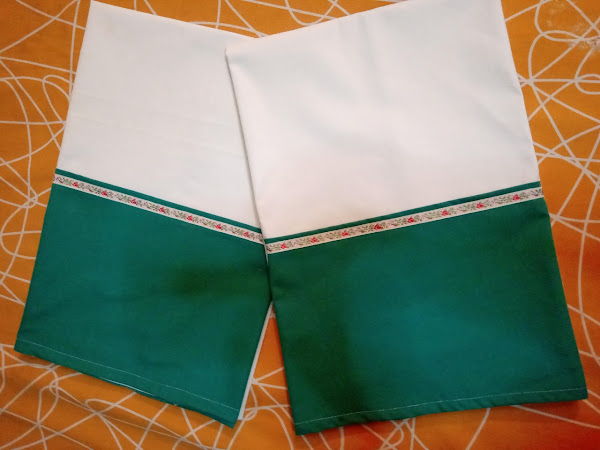Esta vez, haciendo las actividades de casa, es decir otras palabras; "limpiando", me percate que las fundas de las almohadas de las camas, están muy deterioradas y desgastadas, así que me dedique hacer unas cinco (5) fundas, ¿por qué cinco? Pues por que hasta ahí me alcanzo la tela, jajajaja.