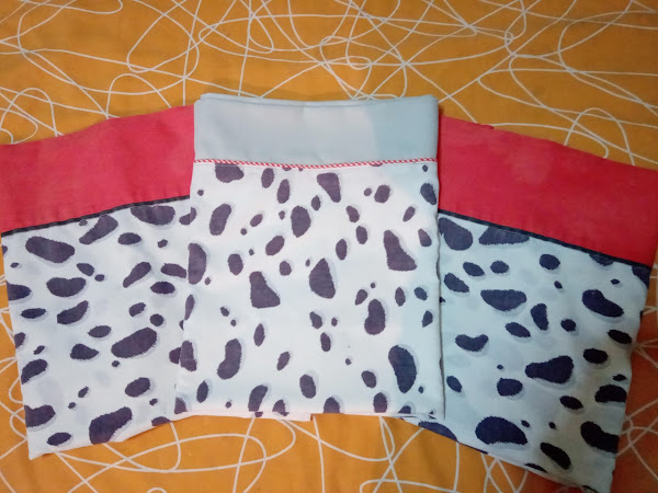 Tres son con diseño de estilo Dálmatas y las otras dos están confeccionadas en tela blanca y verde. Todas con vivos y cinta en sesgo y otras con tiras bordadas. Arriba pueden ver los detalles las fotos.