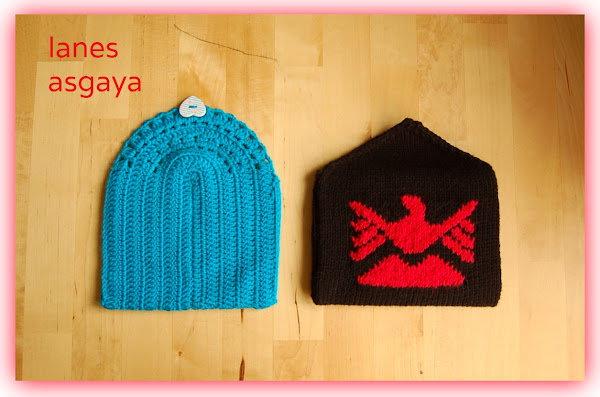 Después hice una funda de ganchillo para mí y le dije a mi hija que pensara si quería alguna funda especial y se le ocurrió que le hiciera una con un símbolo de las películas de Marvel. No tengo ni idea de lo que es, no os lo puedo contar porque no me entero... Me hizo ella el dibujo en una hoja cuadriculada y lo hice con 2 agujas. Le encantó, dice que cuanto más la mira más le gusta, así que yo encantada. Luego metí dentro un sobre de papel y dentro la mascarilla.
