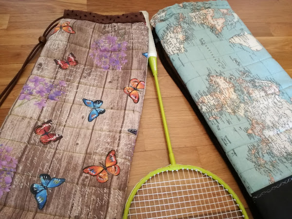 Hace un par de semanas una de mis tías me pidió que le cosiera unas fundas para las raquetas de bádminton de mis primas. El encargo era bien sencillo, una bolsa muy sencilla tipo "bolsa del pan", con un cordón que cerrase al pujar y que se atara a la parte baja de la bolsa y así sirviera también de asa para llevarla al hombro.
