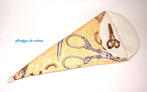 Para la de costura escogí una tela muy apropiada para ello, llena de tijeras. Como adorno le cosí otra.