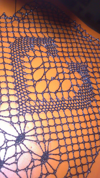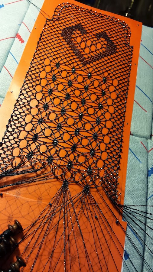 Estas son las fotos que muestran la cantidad de bolillos que lleva y como he ido trabajando, de los detalles y sus puntos.