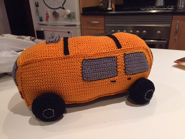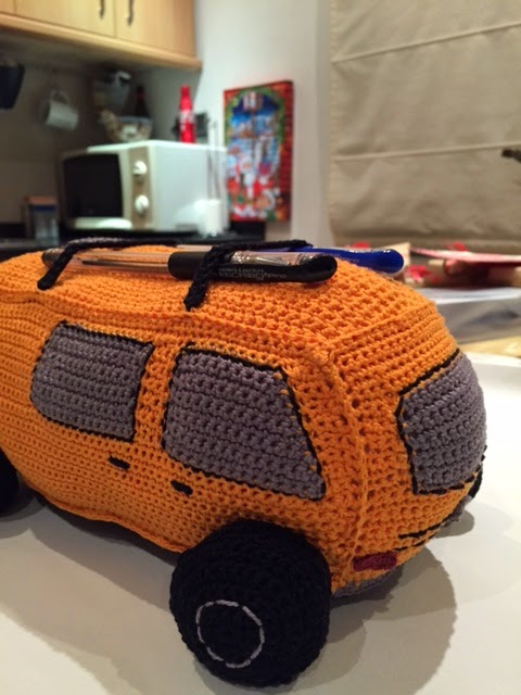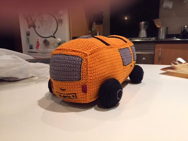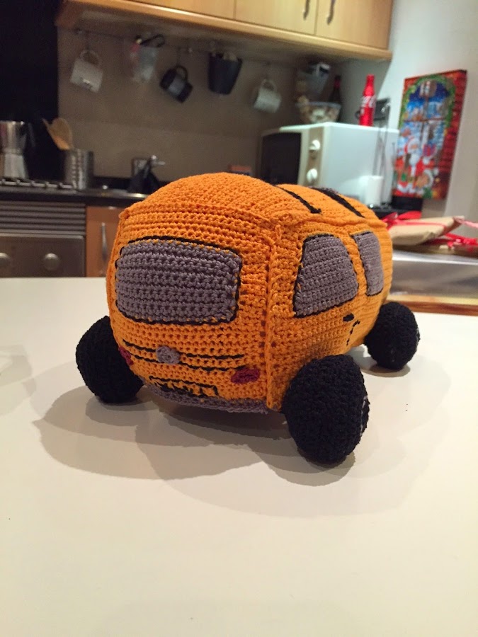 El patrón lo saqué a medida que iba haciendo la labor (según veía que iba necesitando puntos ahí y me sobraban de allá), pero como ya lo tengo, en cuanto tenga un momento libre os lo publico para que no tengáis que romperos la cabeza si os decidís a hacer esta súper furgo: