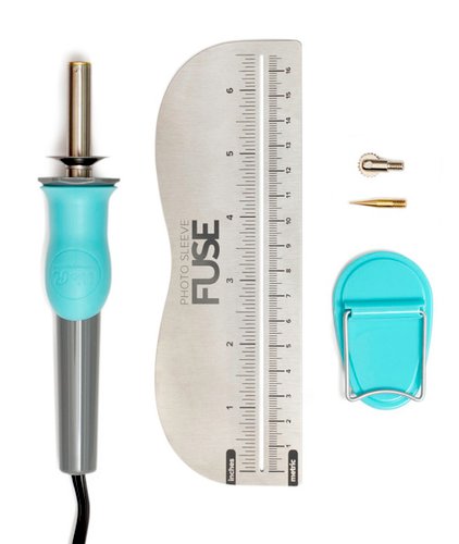 Incluye herramienta, punta de sellado, punta de corte, regla con guía y un soporte para la herramienta.