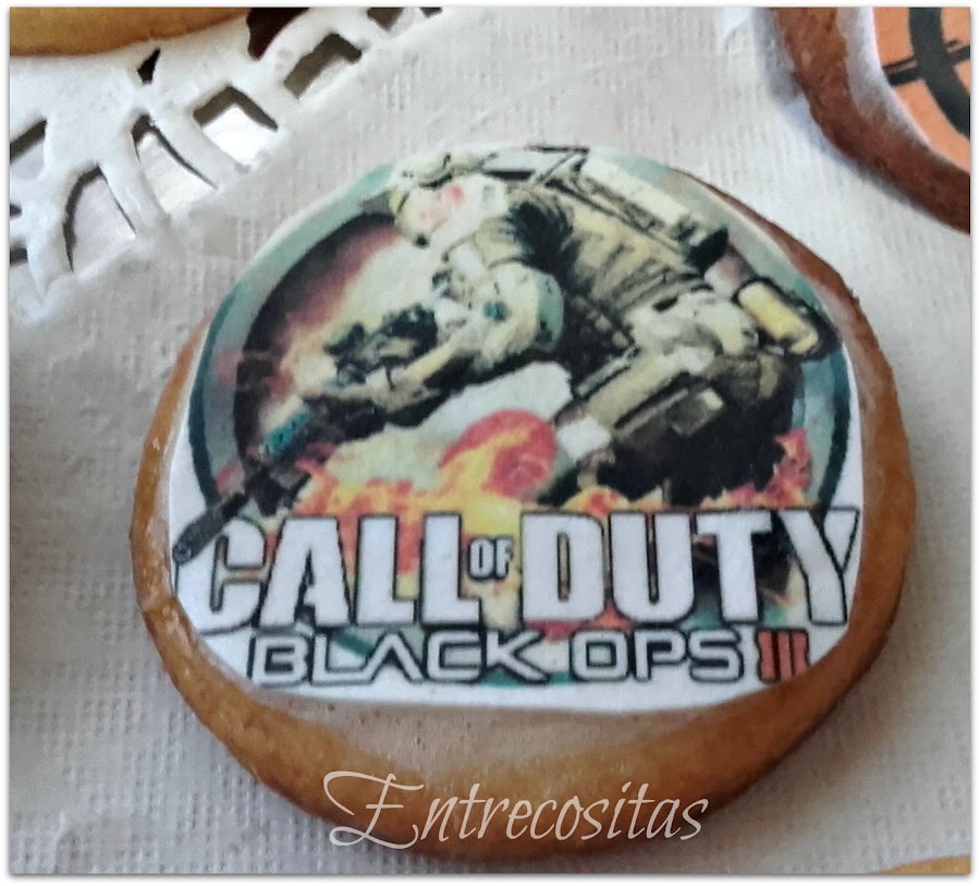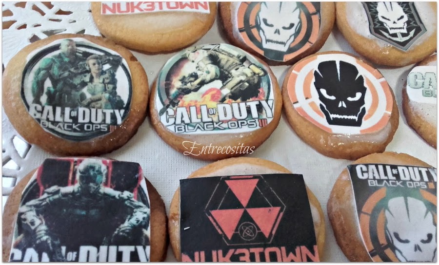 Lo primero que se me ocurrió fue hacer unas galletas decoradas con unas obleas de arroz con dibujos de Call of Duty.