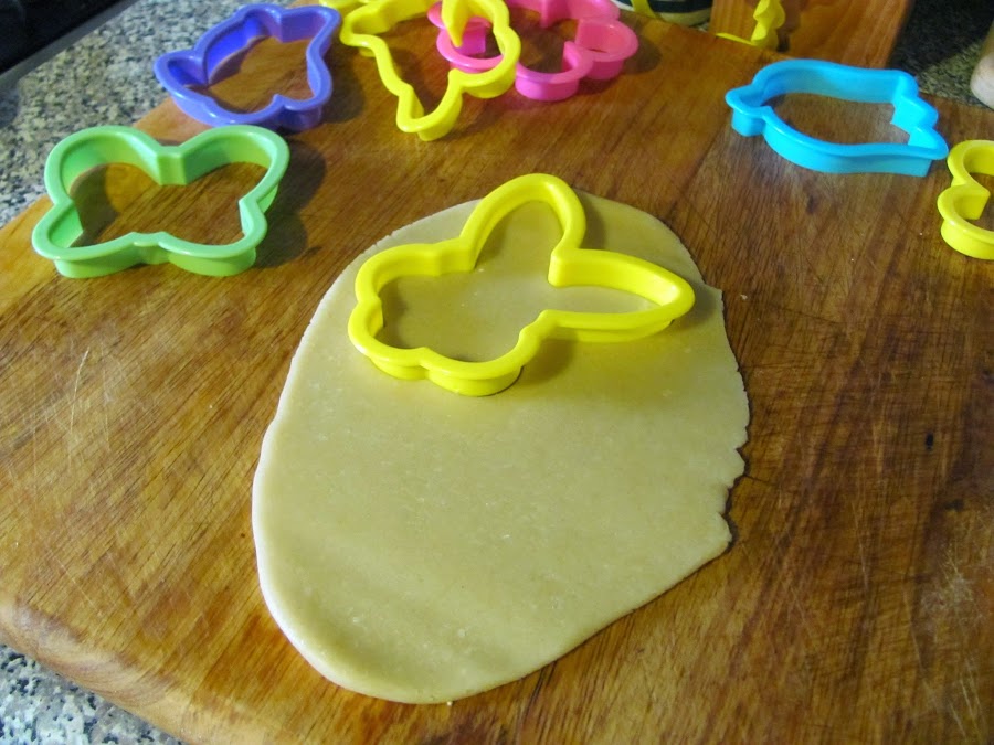 5.- Para usar los moldes tipo cortador, extendemos la masa con rodillo, cuidando que el grosor final de la masa no sea mayor a 1 cm, marcamos las figuras deseadas y retiramos los excedentes, luego despegamos la galleta para colocarla en la plancha para galletas.