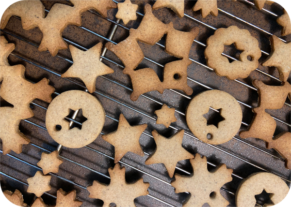 ¡Y listas! Solo queda, sacarlas del horno y dejarlas enfriar en una rejilla para después colocarles la cuerda y ¡colgarlas del árbol de navidad! O comértelas Lo que más te guste.