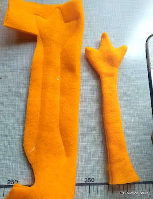 Primero marcamos, cosemos, recortamos, damos vuelta, y dejamos las patitas listas