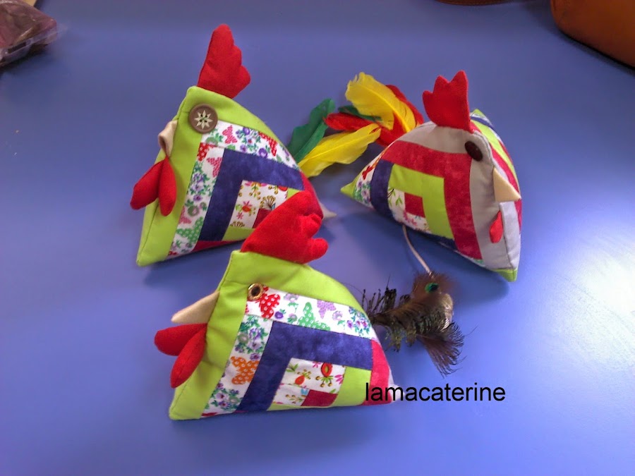 Pero como copiar esta muy feo, pues improvisamos, y como veréis las gallinas son algo mas grandes que el original. Al final decidimos que mas que gallinas lo nuestro eran pollos de corral bien alimentados. No os podéis ni imaginar lo que nos hemos reído haciéndolos.
