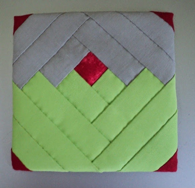 Las telas no son propiamente de patchwork (de las caras) aunque si 100% algodón. Aprendimos la técnica de log cabin y aunque al principio costo un poco ponerse de acuerdo sobre que cara se tenía que coser, ya no se nos olvidará seguro después del debate. Están todas las tiras cosidas a mano con lo que hemos practicado la costura aunque no hemos llegado a acolchar.