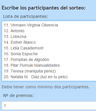 Por fin estoy con vosotras,... entre que he llegado de viaje, he estado plantando cosas en el jardín, recoger, ducha, cena,.... creí que no llegaba, es algo tarde quizás la hora para algun@s pero bueno aquí esta ya el resultado de la ganadora.