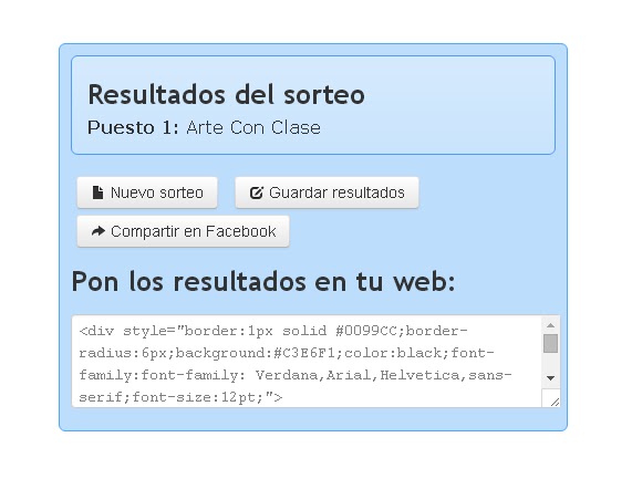 Felicidades Arte Con Clase!! Te mando un email, si en 24h no tengo respuesta realizare de nuevo el sorteo!
