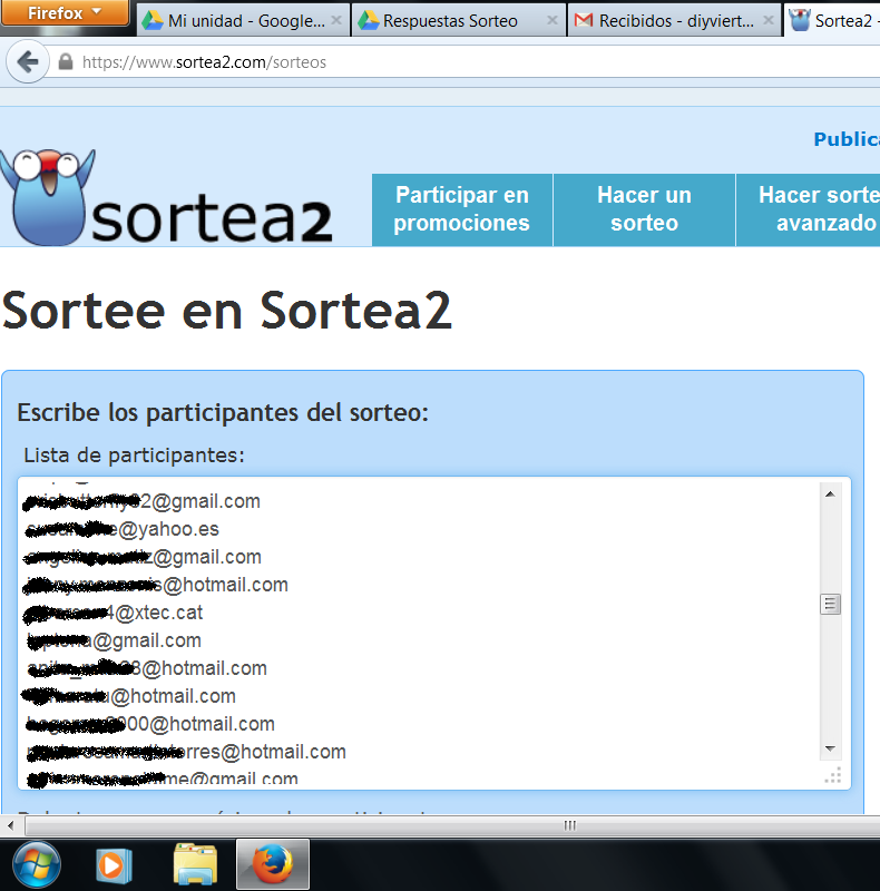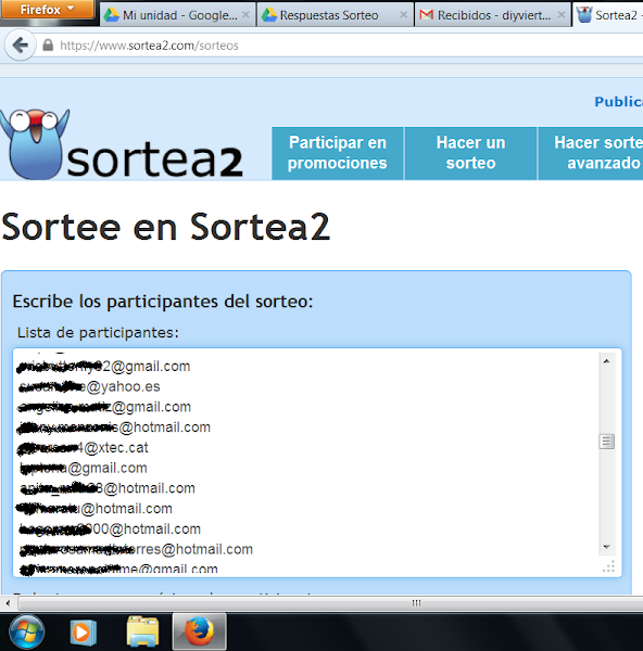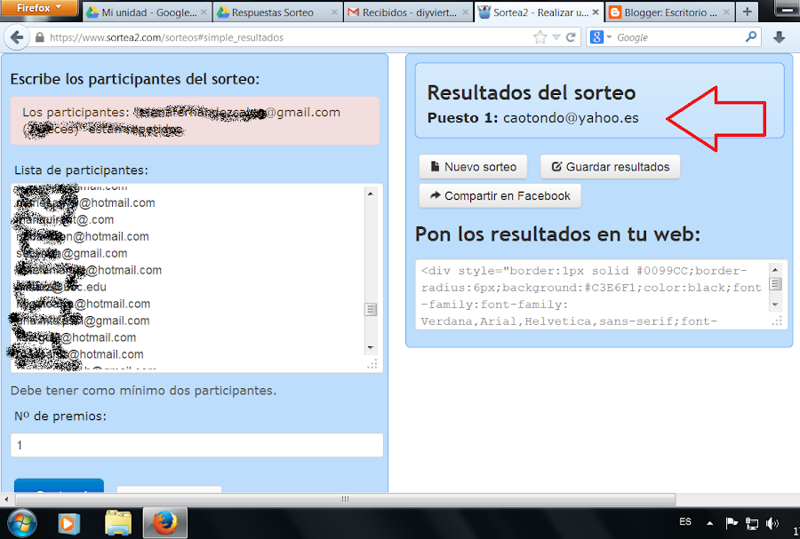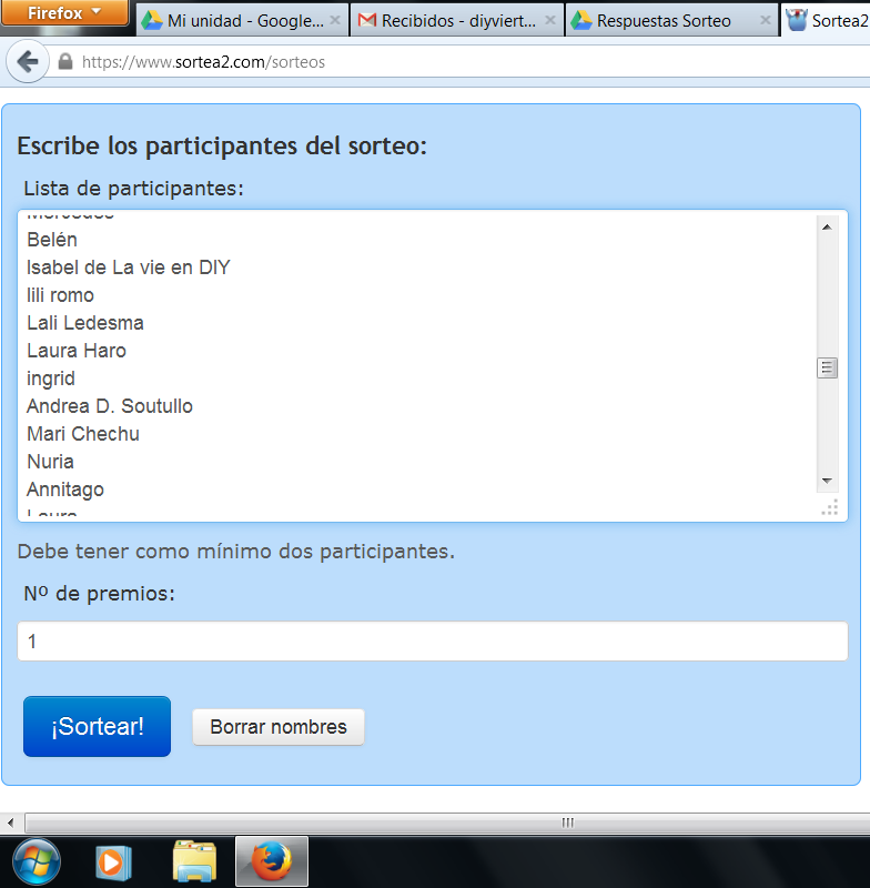 Después de eliminar las participaciones dobles y con miedo de que alguien pensara que había tongo, me he dispuesto a darle al botón Sortear! y la solución ha sido...