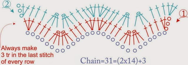 Está tejida en forma de ondas y aún me queda mucho para terminarla.