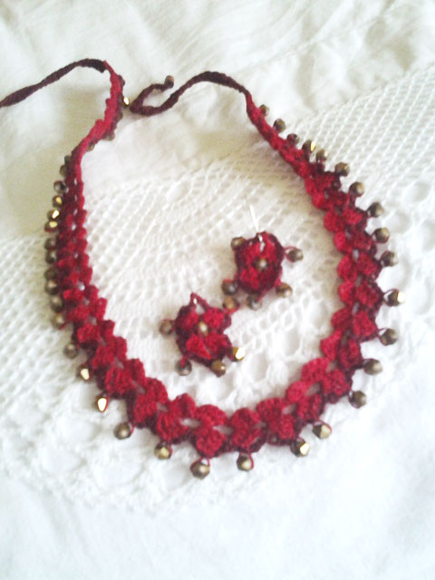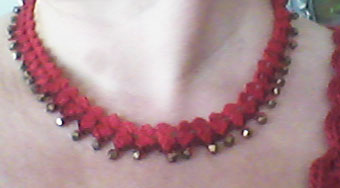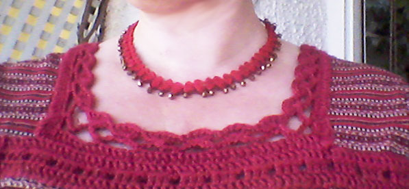 Cualquier puntilla vale para hacer una gargantilla, ya sabes enhebrando primero las cuentas en el hilo antes de tejer, pero a mí me gusta esta, la explicación en esta entrada antigua.