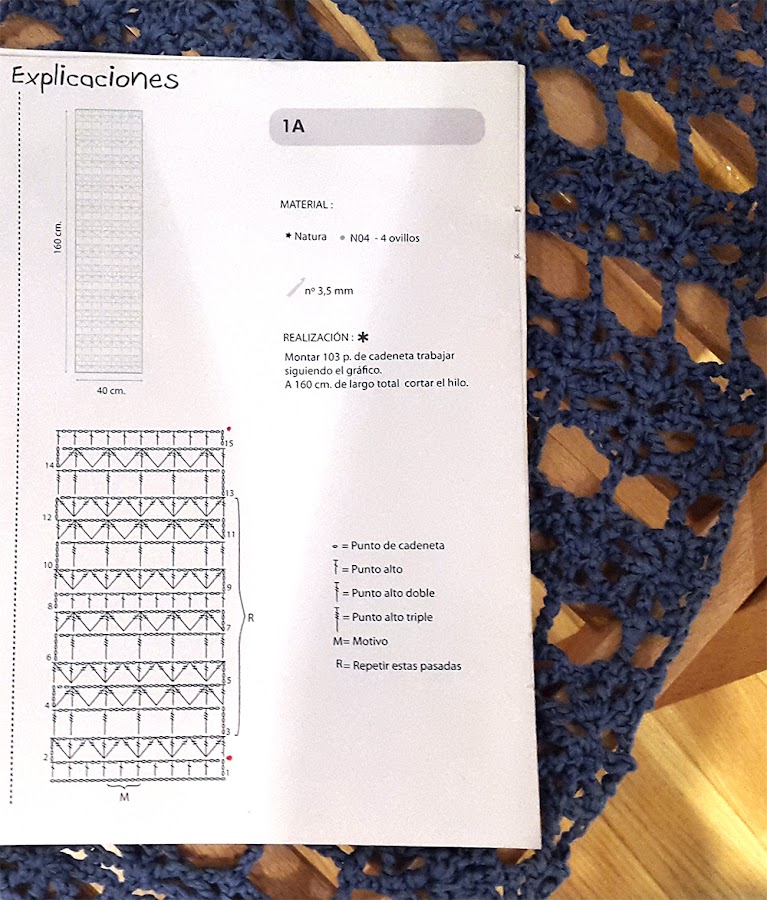 One day, rummaging for the drawers, we find an old DMCNatura catalogue. Turning the pages we saw a shawl that we liked and, in addition, it was perfect to make with a few skeins of cotton tape that we had.
