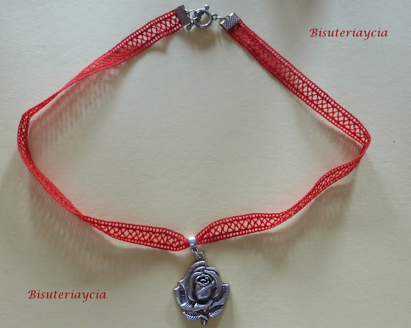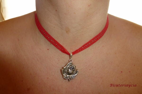 Yo también he querido aportar mi granito de arena a este bonito día creando una gargantilla con un colgante en forma de rosa.