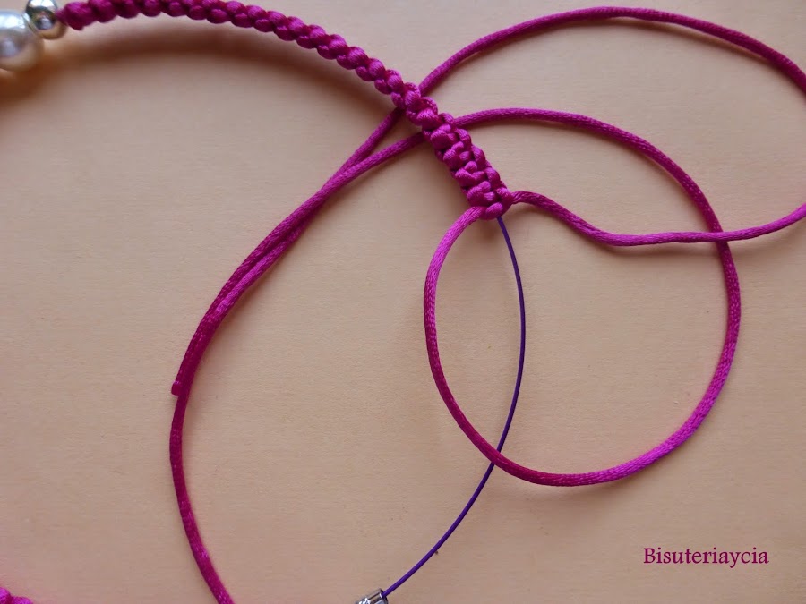 Iremos haciendo puntos a ambos lados de los abalorios hasta llegar al cierre, fijaremos el ultimo nudo con un poco de pegamento para que no se nos deshaga y a presumir delante de las amigas.