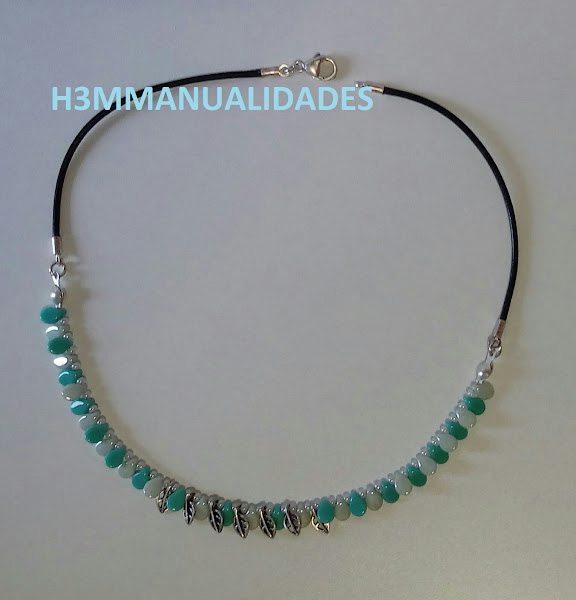 Aquí te muestro también una gargantilla que me hice hace tiempo. Con brillos nacarados y unas hojitas intercaladas.