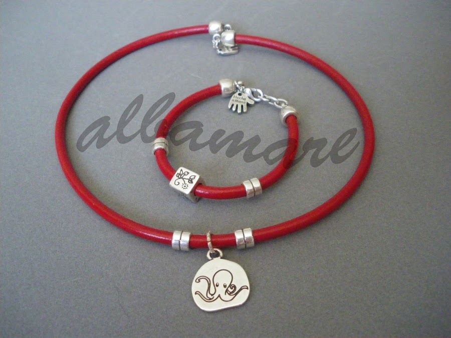 Aquí tenéis cada pieza por separado para que las podáis ver mejor, y la pulsera a juego con la gargantilla roja.