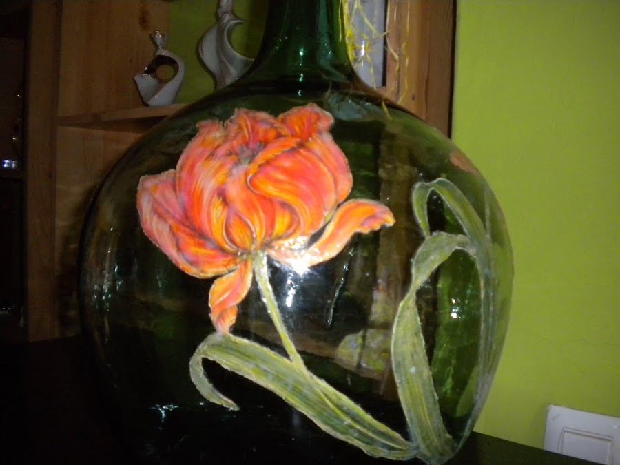 GARRAFA CON DECOUPAGE Y BARNIZ RELIEVE