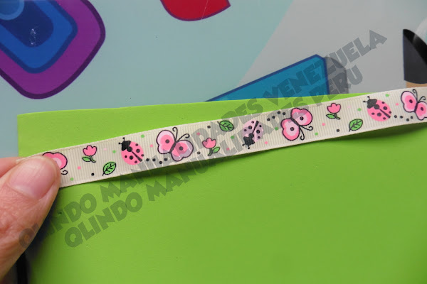 7. En en el extremo de arriba del microporoso vamos a pegar una cinta gross que es la misma de hacer lacitos para niñas, tu puedes elegir el color de tu preferencia.