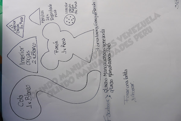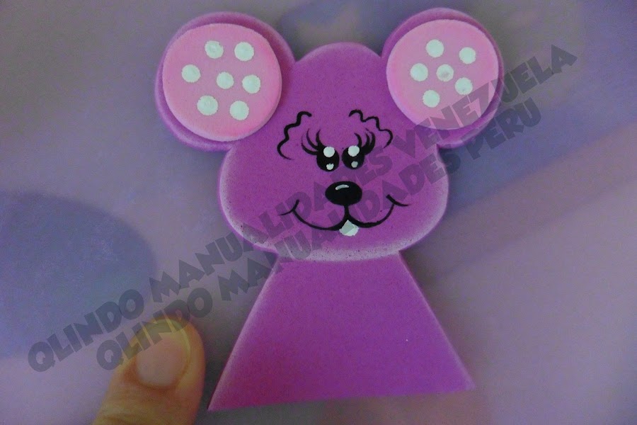 24. Por ultimo cortamos la pieza del ratoncito en microporoso fucsia, y le hacemos sus detalles.