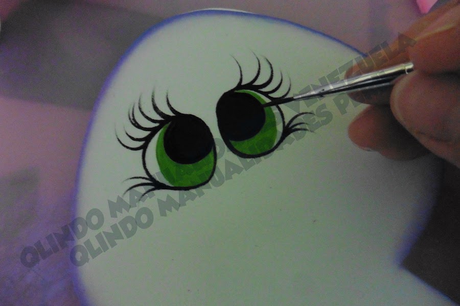 17. Para los ojitos yo utilizo un pincel lineer 000 y pinturas acrílicas, si esto se te hace difícil puedes utilizar ojitos tipo sticker o cuentas negras.