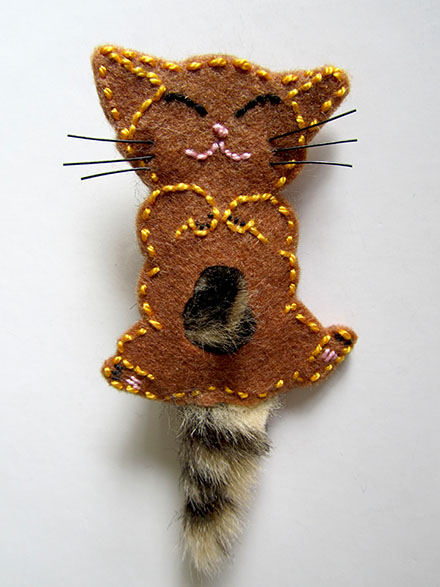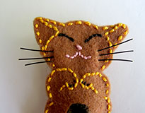 Ya había hecho uno que estaba en fieltruna.com pero creo que este me ha salido mejor, no? Lo he hecho con un fieltro color marrón más claro que el anterior. Y esta vez los bigotes los he hecho con hilo de nylon.