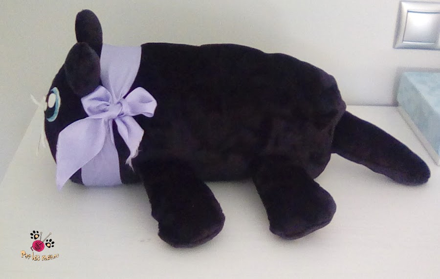 Vale, sí, admito que me he entretenido mucho haciendo este gato. Pero entre que no he tenido tiempo y que he ido a contrareloj, me ha salido un pelín regular.....por no decir que es mejorable. Pero, oye, para ser el primer peluche grande que hago en mi vida me satisface mucho que a las personas de mi alrededor les haya gustado.